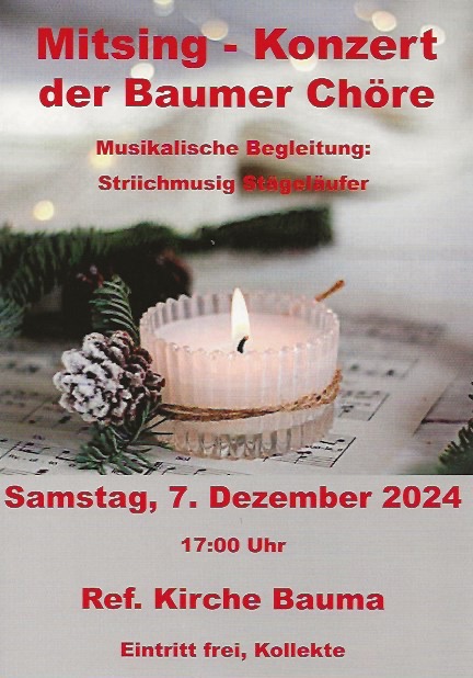 Samstag, 7. Dezember 2024 ein weihnächtliches Mitsing-Konzert statt.
